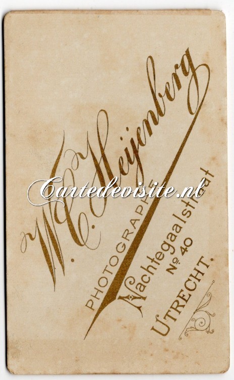Fotograaf W.C. Heijenberg. Nachtegaalstraat 40 te Utrecht. CDV met beschermfolie.